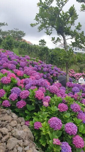 그렇게 걷는 오름과 둘레길 주위의 산수국들도 벌써 잔치를 끝낼 모양이다. 벌이 왔다간 산수국들의 잎들이 하얀 모습으로 뒤집어져 있다. 다른 꽃들은 잎을 오므리며 또 다음의 생을 약속하지만 산수국은 조금 다른 모습이다.
