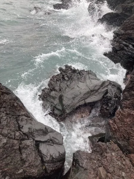며칠 전 잔비가 내리는 송악산 둘레길에서 바라본 산방산 꼭대기가 구름으로 둘러싸였다. 비오는 둘레길은 언제나 이렇게 호젓한 포행이다.